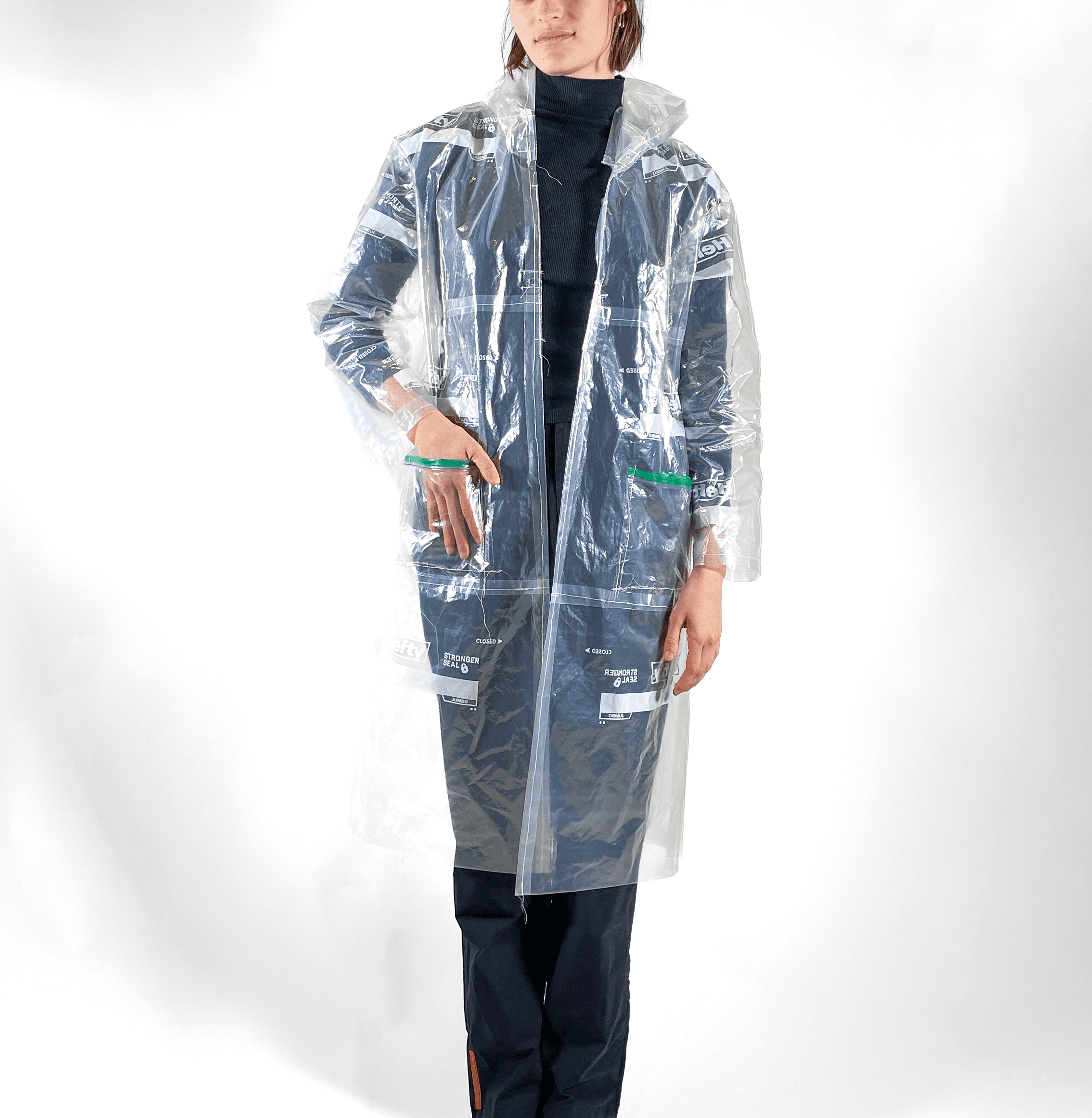 Drawing on the tradition of passing down garments as heirlooms, Acid Raincoat explores how a constructed object can carry meaning, memory, and contradiction. By designing the piece as wearable, Acid Raincoat makes the idea of legacy more immediate and personal. It poses a question: what would it mean to inherit a garment made from waste? How might we treat disposable materials differently if we saw them as part of our shared future?