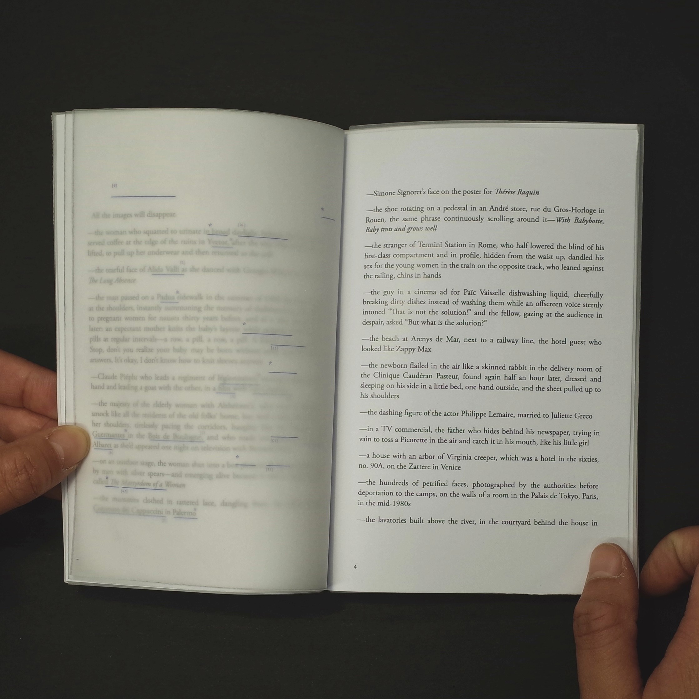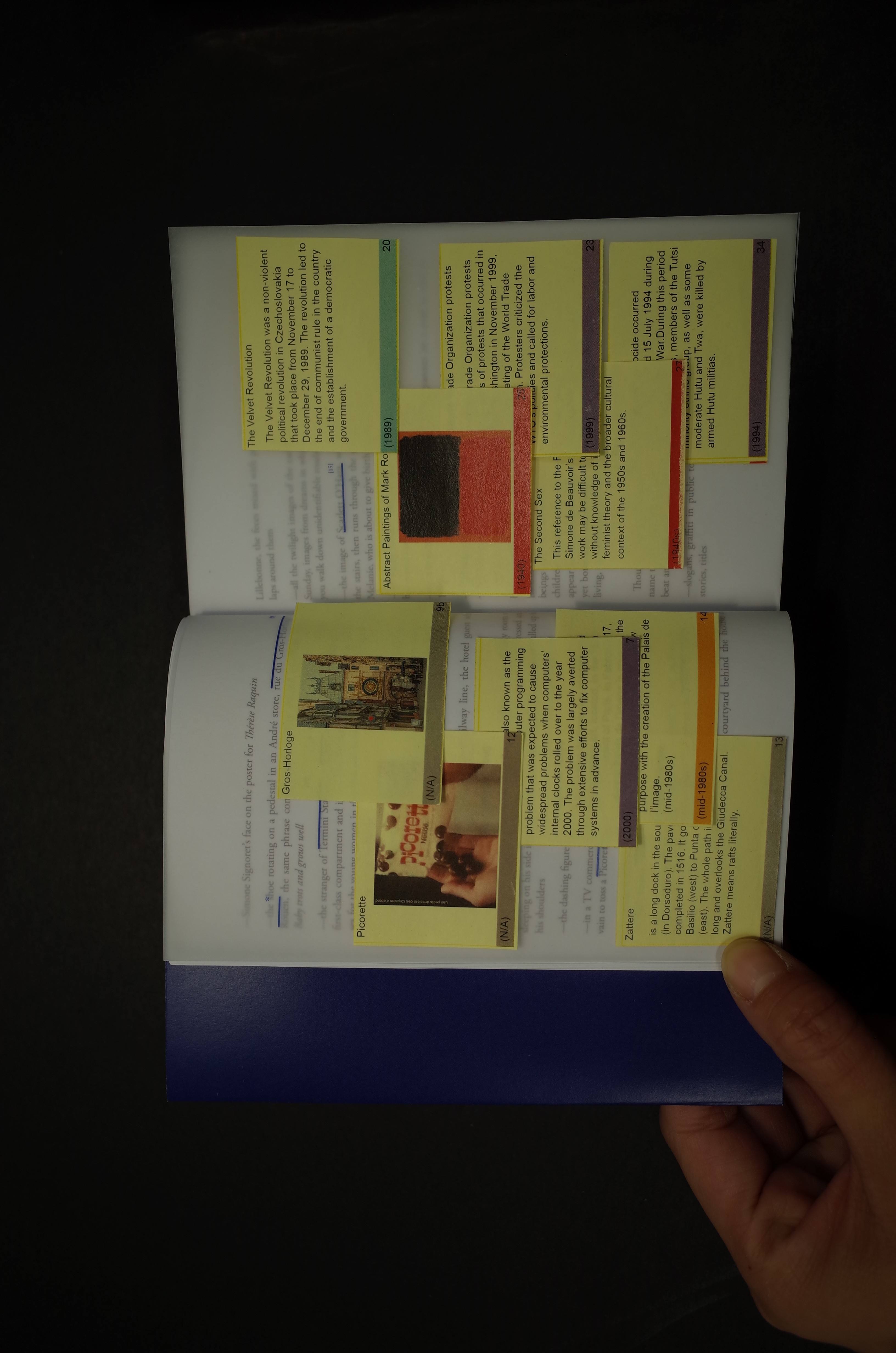 The Physical Link: Using Post-it notes and annotations on the vellum, readers can "click" (interact with) a reference. The information is entirely additive—it doesn't extract meaning for the reader but provides the context necessary to stay immersed in Ernaux’s world without reaching for a phone.